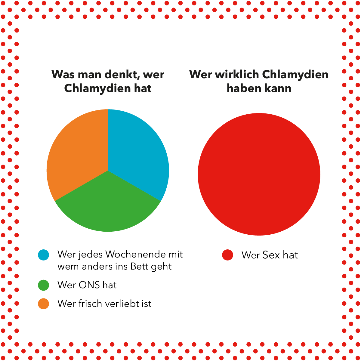 Du bleibst auf dem Laufenden: Auf Instagram und Facebook findest du aktuelle und wichtige Informationen für deine sexuelle Gesundheit. Du erfährst zum Beispiel, wie du dich vor sexuell übertragbaren Infektionen (STI) schützen kannst, warum Vielfalt ganz alltäglich ist und wie du über deine Bedürfnisse und Grenzen sprechen kannst.